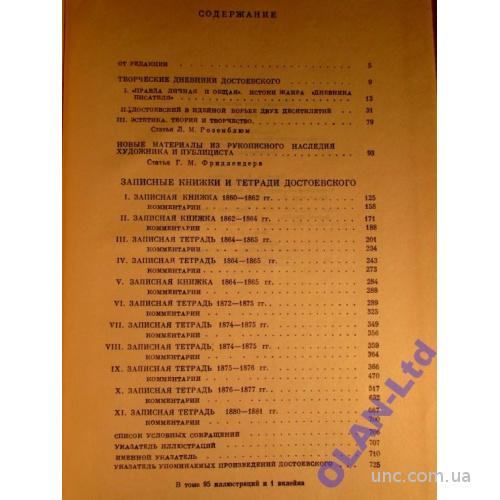 В представленном редком малотиражном академическом издании 1971 г. "Неизданный Достоевский" публикуются записные книжки и тетради писателя за два десятилетия (1860-1881 гг.), которыми Достоевский постоянно пользовался в работе над романами, повестями и публицистическими статьями. Впервые изданные, ранее не публиковавшиеся записи Достоевского содержат бесчисленные отклики на общественные события, газетные сообщения, журнальные выступления, биографические записи, а также деловые заметки, связанные, в частности, с редакторской работой писателя. Материалы тома значительно обогащают представление об идейной эволюции и творческом пути Достоевского, о трагических противоречиях его мировоззрения. Из записей, относящихся к художественным замыслам писателя, в книгу вошли ранние наброски к «Братьям Карамазовым", «Кроткой», планы романов «Отцы и дети»» и «Мечтатель», наброски повести, относящиеся к началу 1877 г. и др. Книга очень богато иллюстрирована : 95 иллюстраций . Том предваряют исследовательские статьи "Творческие дневники Достоевского" (Л. Розенблюм) и "Новые материалы из рукописного наследия художника и публициста" (Г.Фридлендер). Содержание: От редакции, с. 5-8. М.Л. Розенблюм. Творческие дневники Достоевского (статья). "Правда личная и общая". Истоки жанра "Дневника писателя", с. 13-30 Достоевский в идейной борьбе двух десятилетий, с. 31-78 Эстетика. Теория и творчество, с. 79-92. Г.М. Фридлендер. Новые материалы из рукописного наследия художника и публициста, с. 93-124. Записные книжки и тетради Достоевского. I. Записная книжка 1860-1862 гг., с. 125-157 Комментарии, с. 157-170. II. Записная книжка 1862-1864 гг., с. 171-187 Комментарии, с. 188-200. III. Записная тетрадь 1864-1865 гг., с. 201-233. Комментарии, с. 234-242. IV. Записная тетрадь 1864-1865 гг., с. 243-272. Комментарии, с. 273-283. V. Записная книжка 1864-1865 гг., с. 284-287. Комментарии, с. 288. VI. Записная тетрадь 1872-1875 гг., с. 289-324 Комментарии, с. 325-348 VII. Записная тетрадь 1874-1875 гг., с. 349-355 Комментарии, с. 356-358. VIII. Записная тетрадь 1874-1875 гг., с. 359-363. Комментарии, с. 364-365 IX. Записная тетрадь 1875-1876 гг., с. 366-469 Комментарии, с. 470-516. X. Записная тетрадь 1876-1877 гг., с. 517-631 Комментарии, с. 632-666. XI. Записная тетрадь 1880-1881 гг., с. 667-699 Комментарии, с. 700-705 Список условных сокращений, с. 706 Указатель иллюстраций, с. 707-709 Именной указатель, с. 710-724. Указатель упоминаемых произведений Достоевского, с.725-727. «Книги - корабли мысли, странствующие по волнам времени и бережно несущие свой драгоценный груз от поколения к поколению». Фрэнсис Бэкон О в е я н н о е Л е г е н д а м и А р х и в а ж н о е Н а с л е д и е " О Л А Н " –Ваш надежный компас в захватывающем мире книг ! P. S. Предлагаю уникальные церковные старопечатные книги, антикварные и букинистические издания различной тематики. Конкретные заказы с указанием интересующей Вас тематики, авторов, серий либо конкретных книг отправляйте через форму: «ЗАДАТЬ ВОПРОС ПРОДАВЦУ»! Оперативно отвечу на каждый запрос и в кратчайшие сроки выполню Ваш заказ! Сделав заказ, Вы можете приобрести классику, собрания сочинений, подписки, украинистику, научные и академические издания, художественные произведения отечественных и зарубежных писателей , историко-приключенческую литературу, индеанистику, востоковедение,энциклопедические, справочные издания и словари, книги по искусству, мировой истории и истории Украины, по географии и истории географических открытий, описания п