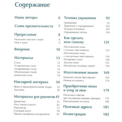Книга содержит около 300 цветных иллюстраций, наглядно демонстрирующих весь процесс рождения ножа.
