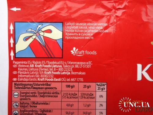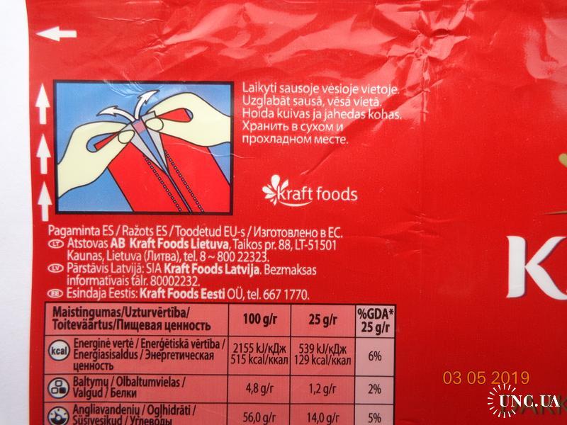 Шоколад произведен компанией AB "Kraft Foods Lietuva" (г. Каунас, Литва) для стран Прибалтики (Латвия, Литва, Эстония), обёртка куплена в Латвии (г. Рига) и привезена в Украину в 2019 году.