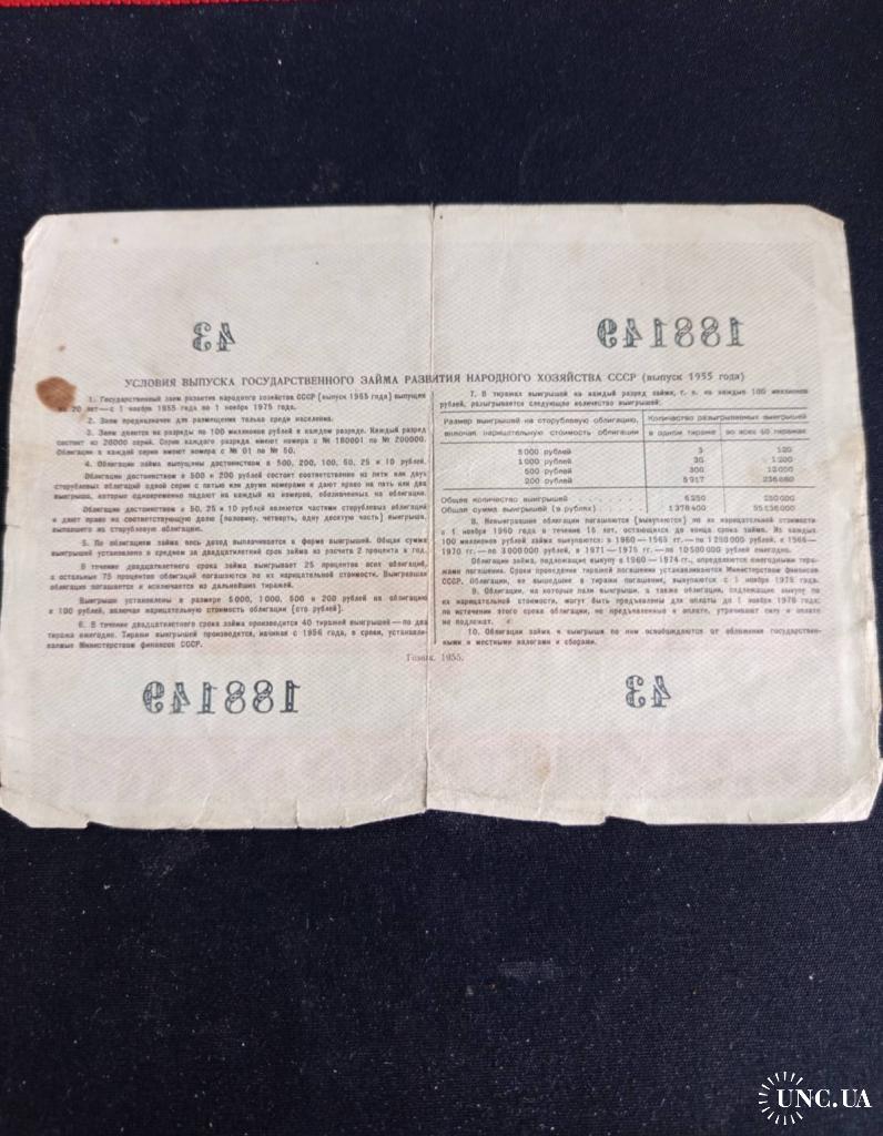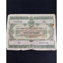 1950-1960Облігація 100 рублів СРСР 1955 р.