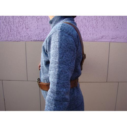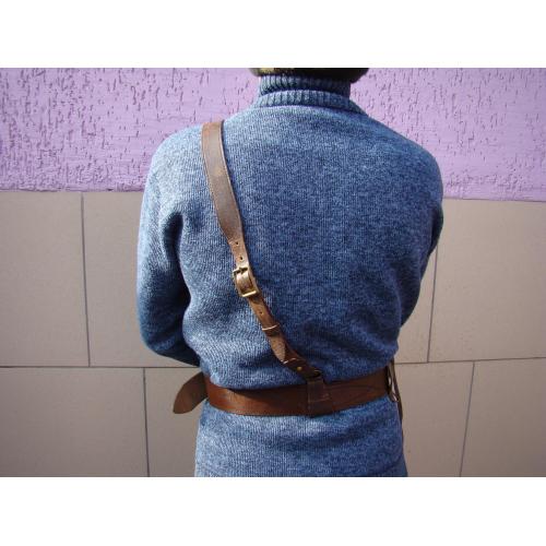 1946-1990Офицерский кожаный ремень портупея, полный комплект. В лот входит: кожаный ремень, кожаная портупея, кожаная кобура пистолета ПМ с шомполом, кожаный страховочный тренчик для пистолета ПМ. Размер ремня по штампу 4, длина ремня 1 м 40 см, но всегда можно укоротить под себя, это не проблема. Минимальное б/у в хорошем состоянии. В остальном все как на фото.