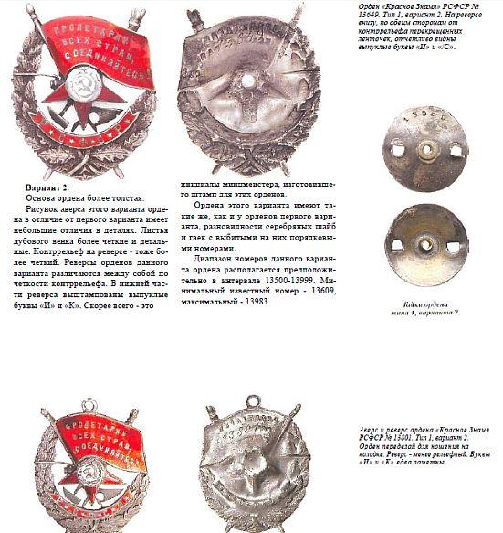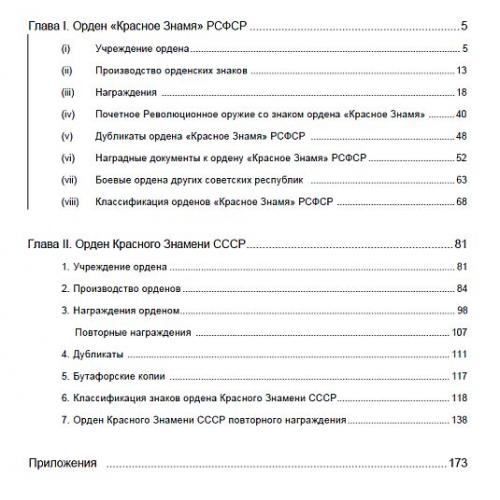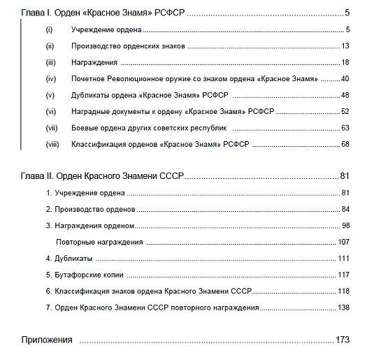Особый раздел посвящен собственно классификации знаков ордена Красного Знамени различных периодов, где учтены практически все, даже самые мелкие, их разновидности.