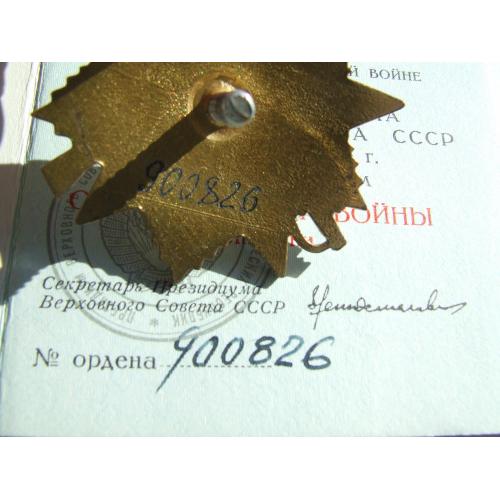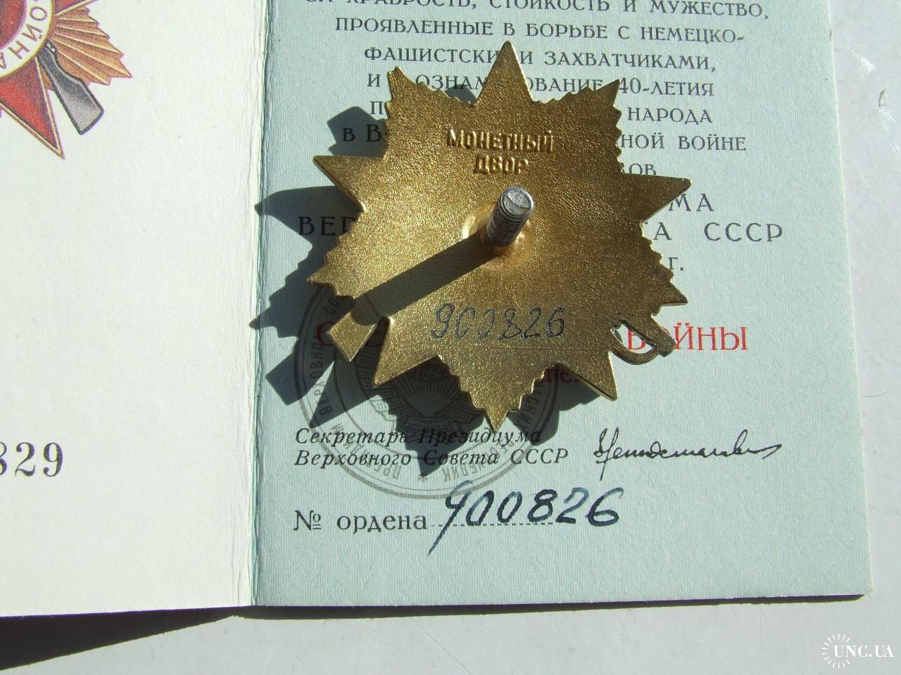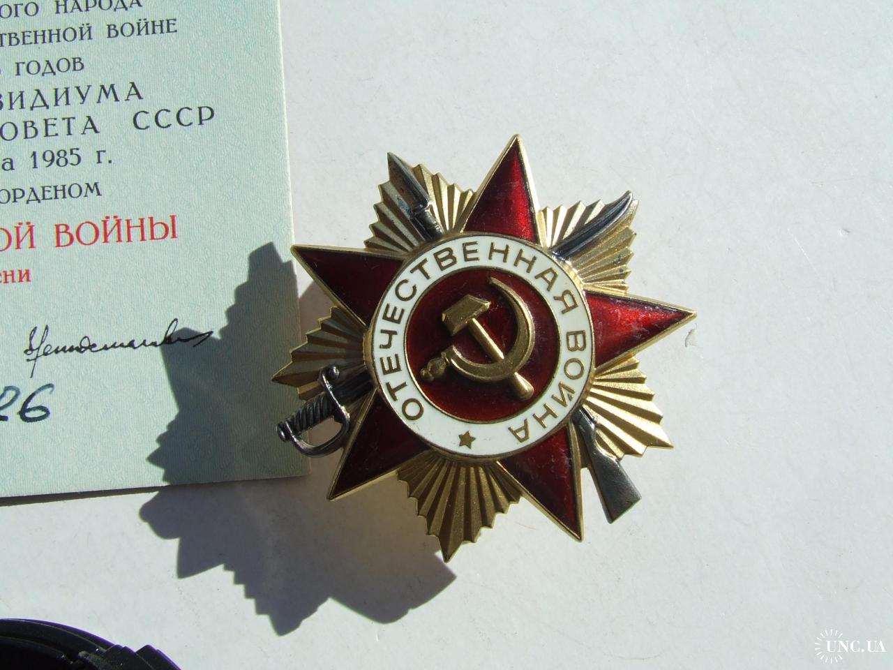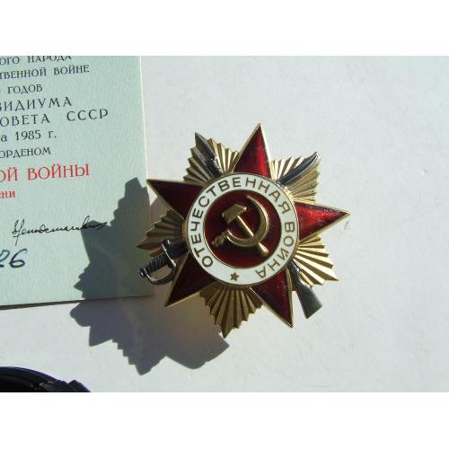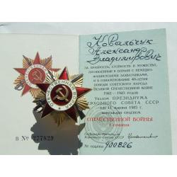 Орден ВВВ -1 степені юбілейний № 900 826 наг. 1985 року на Ковальчук А.В.