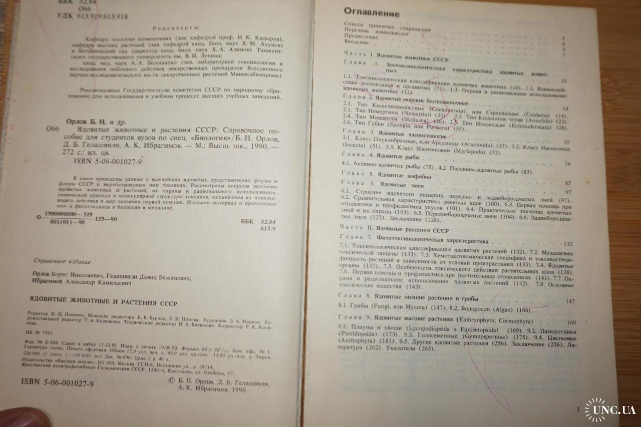 В книге приведены данные о важнейших ядовитых представителях фауны и флоры СССР и вырабатываемых ими токсинах. Рассмотрены вопросы экологии ядовитых животных и растений, их охраны и рационального использования, химической природы и молекулярной структуры токсинов, механизмов их поражающего действия и мер оказания первой помощи. Изложен материал о применении зоо- и фитотоксинов в биологии и медицине. Цветные рисунки по тексту.