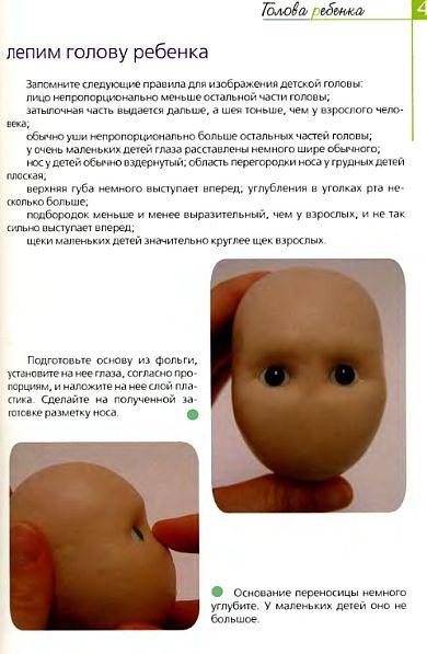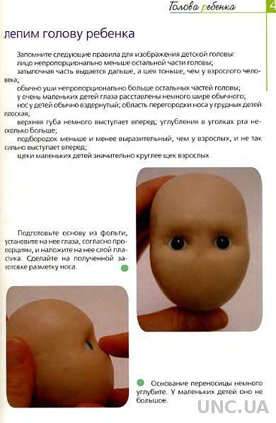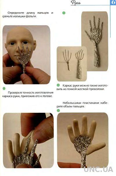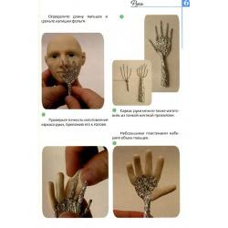 В книге подробно показаны основные приемы лепки головы, рук и ног куклы.