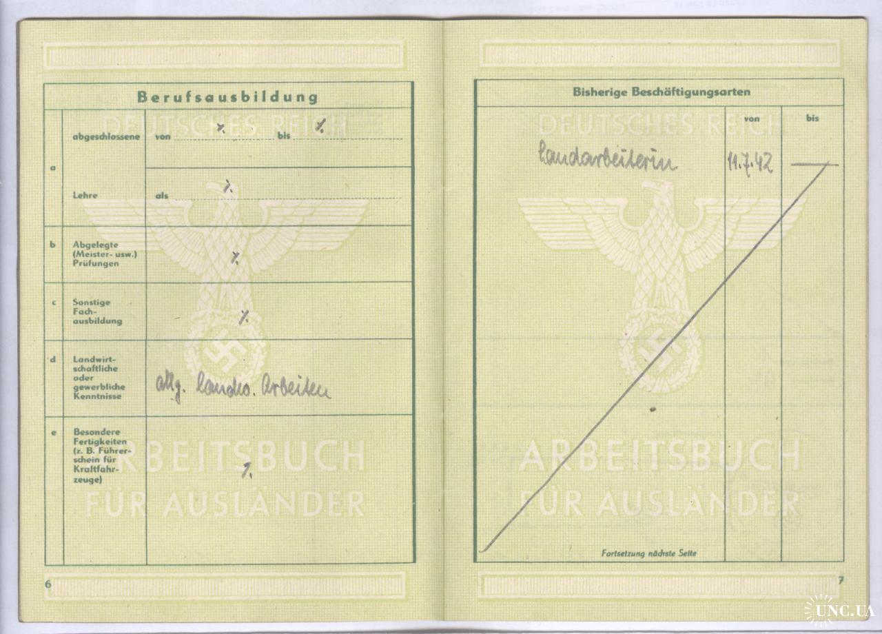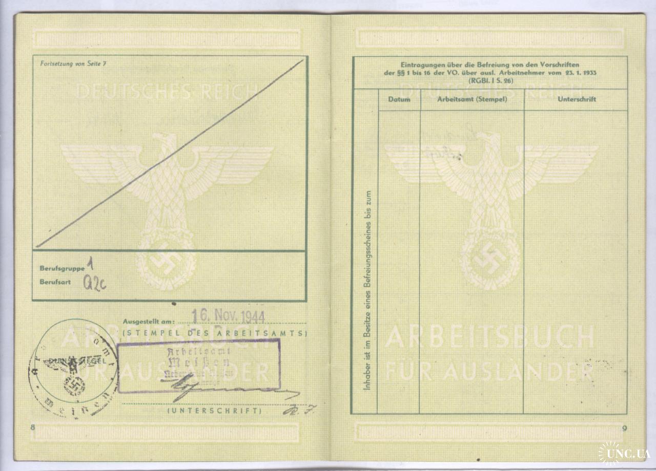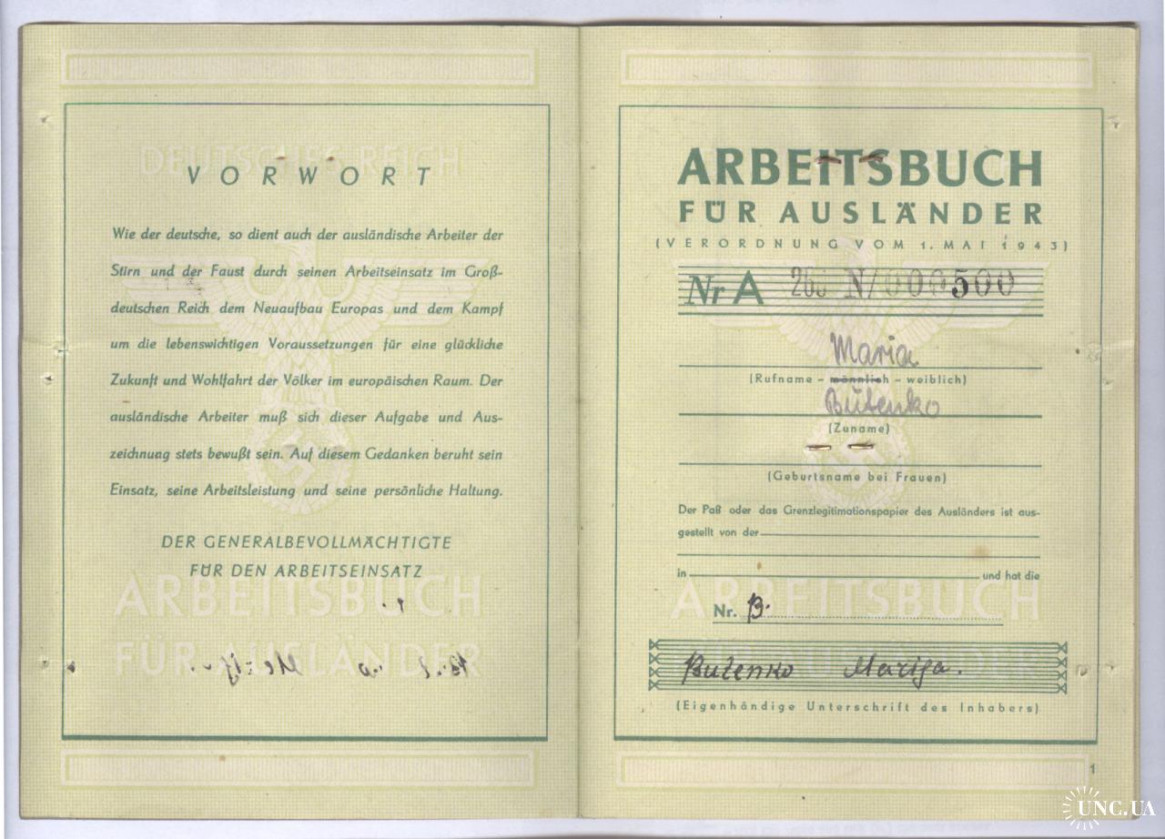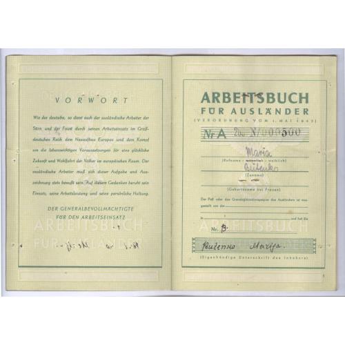 «Arbeitsbuch Für Ausländer» — «Трудовая книжка для иностранцев», основной документ, регулировавший пребывание остарбайтера на территории рейха в период 1942— 1945 г.г.