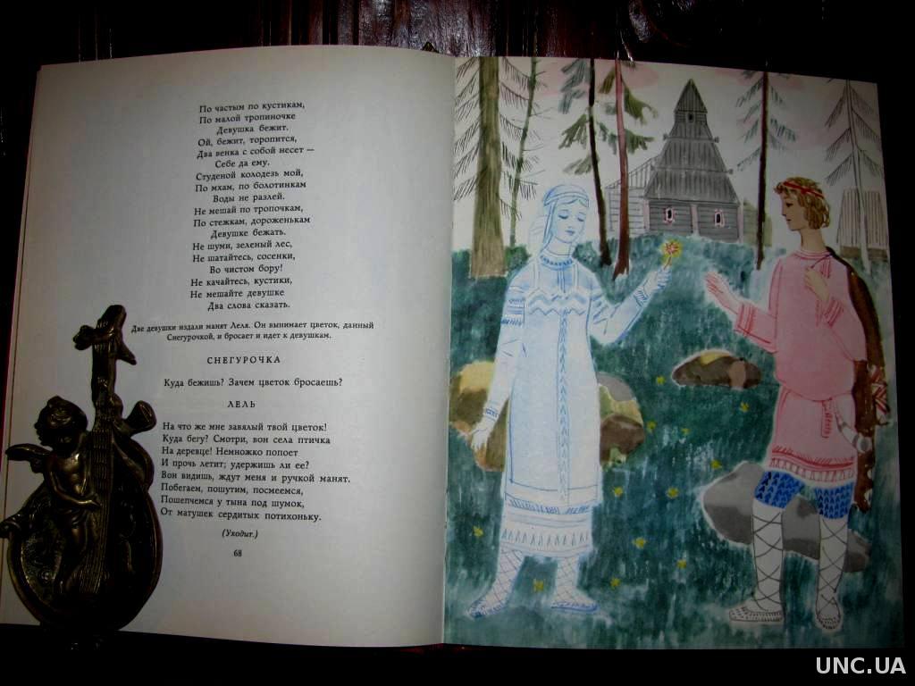 Великолепные илюстрации к данному подарочному изданию «СНЕГУРОЧКИ»(1966) - это авторские работы известного русского художника- графика АДРИАНА МИХАЙЛОВИЧА ЕРМОЛАЕВА (1900, РОСТОВ-НА-ДОНУ — 1977, МОСКВА).Учился будущий мастер книжной иллюстрации в Боголюбовском рисовальном училище в Саратове (1915–1917) у Л. О. Никулина, затем — в Ленинградском художественно-промышленном техникуме (1925–1927) у Н. И. Дормидонтова, В. С. Сварога, П. А. Шиллинговского. Удостоен звания заслуженного деятеля искусств РСФСР (1946).Сотрудничал в издательствах «Детская литература», «Советский писатель», «Молодая гвардия» и других. Сотрудничал в журналах «Наши достижения» (1929–1935), «30 дней» (1934–1940), «Мурзилка» (с 1946).