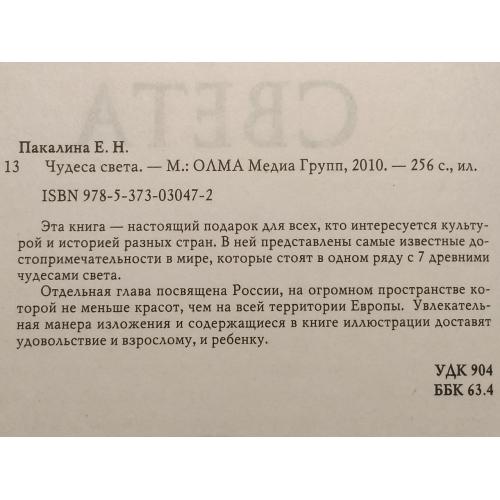 Пакалина. Чудеса света. Издательство: ОЛМА. 2010 год. Состояние новой книги!