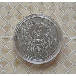 Памятная, юбилейная монета выпущенная в честь 50-летия Организации Объединенных Наций.