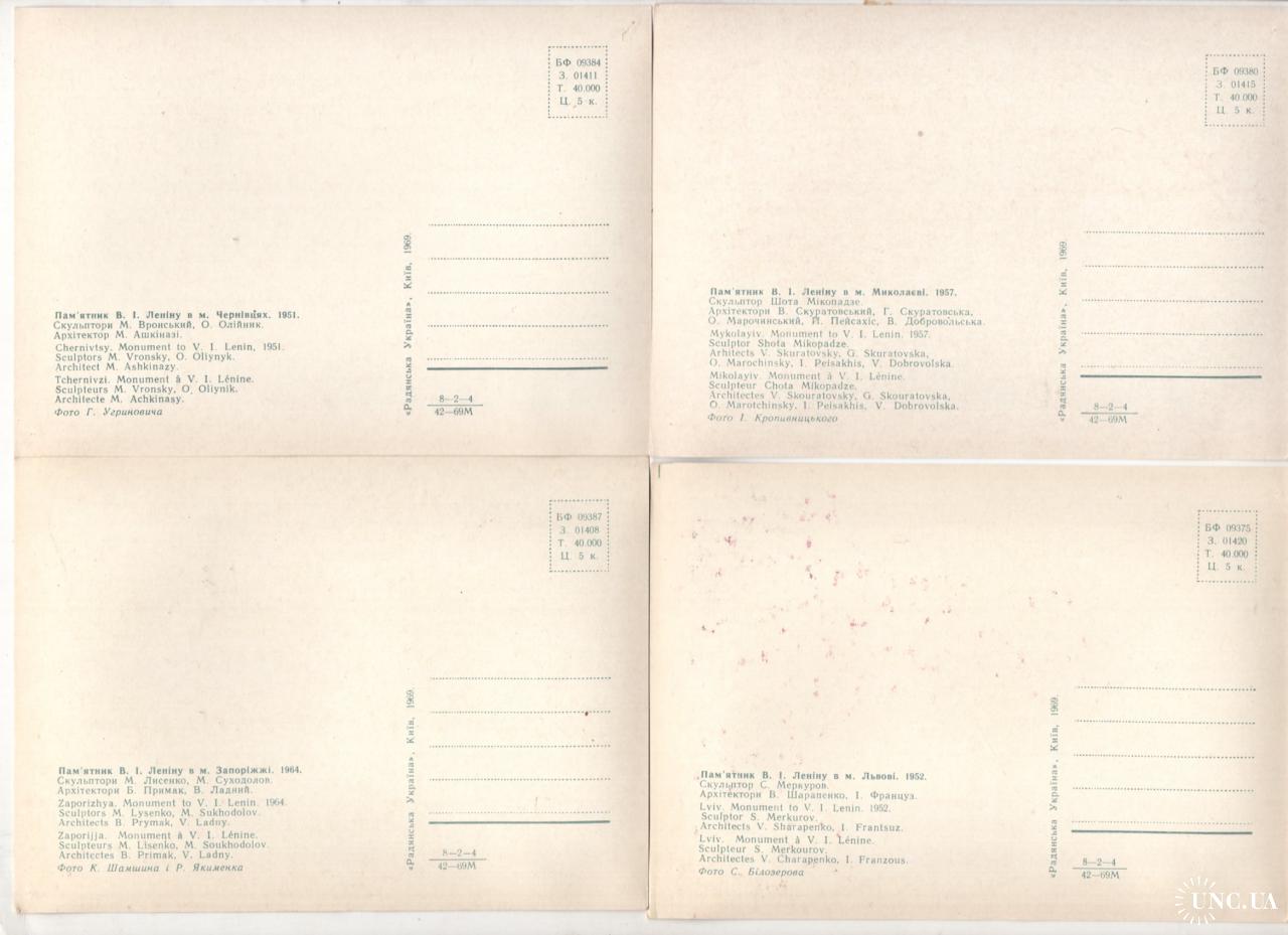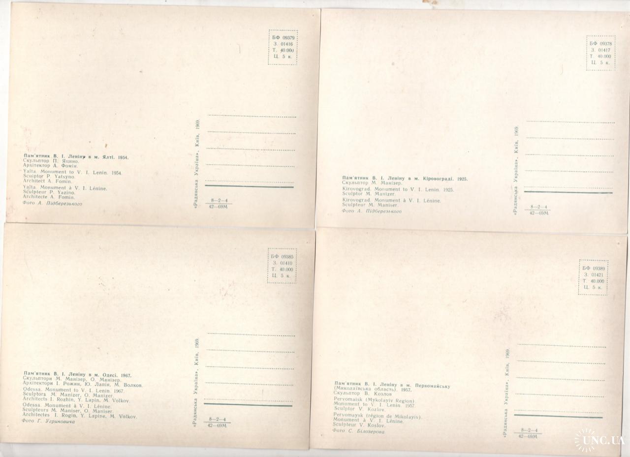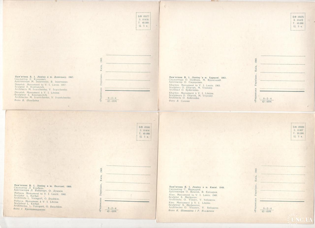 Памятники Ильичу на Украине комплект 14 из 15 открыток 1969 Радянська Украина - Донецк, Луганск ...