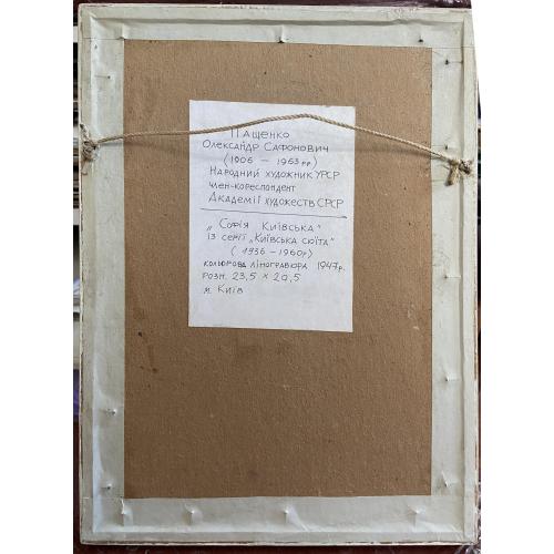 «Софія Київська»- кольорова ліногравюра 1947р. Розмір 23,5/ 20,5. Із серії «Київська сюїта» (1936-1960р)