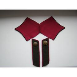 1901-1917Петлицы носились на воротнике военного обмундирования и имели два варианта геометрической формы. Для ношения на воротнике гимнастерки, мундира, кителя - в форме параллелограмма. Для ношения на воротнике шинели - ромбовидной формы. Петлицы изготовлены в полном соответствии по выбранным материалам и технологией изготовления 1935-42 годов. Цвет обоих петлиц малиновый.