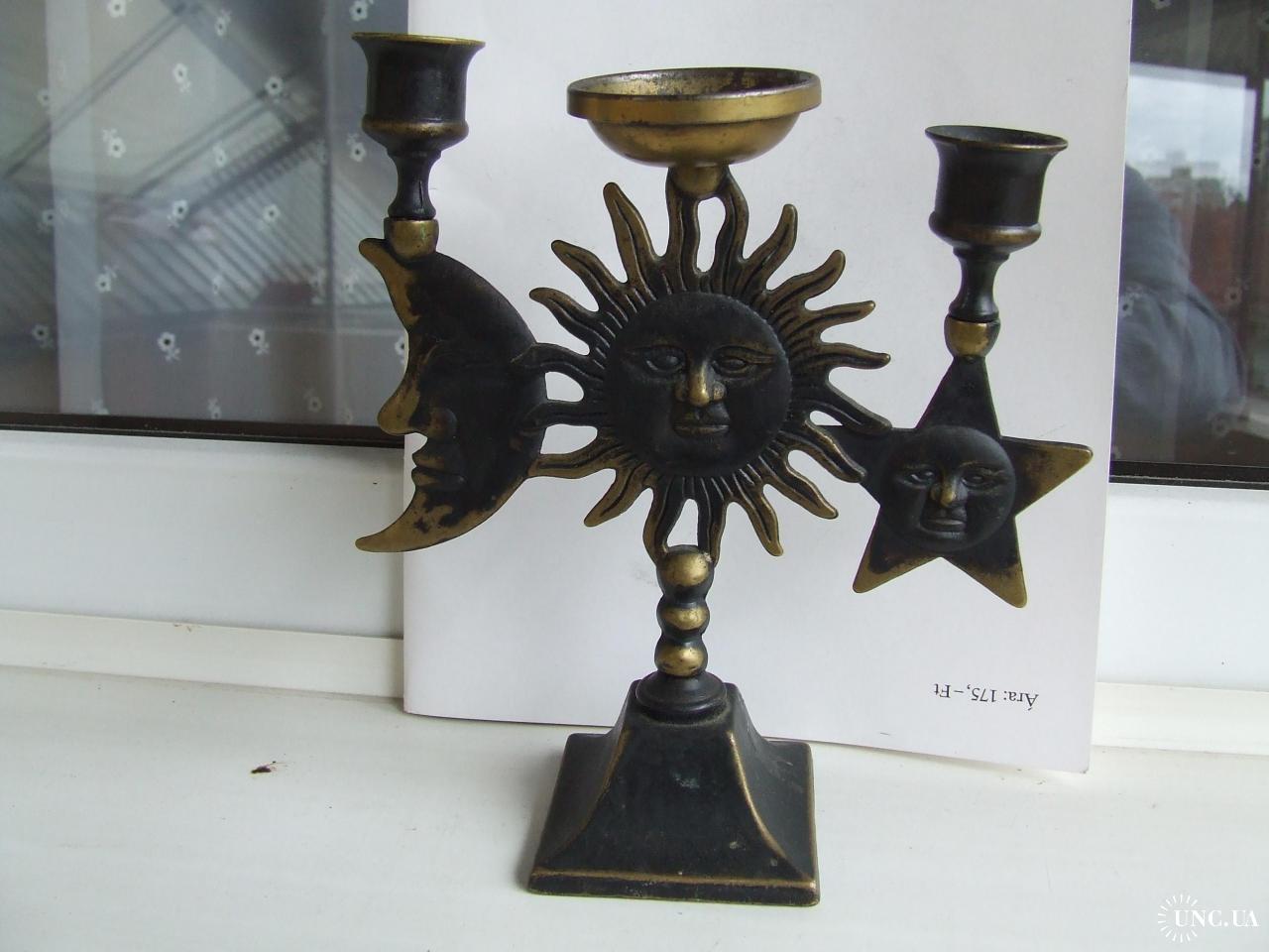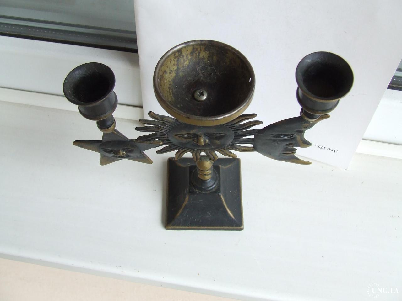 Підсвічник на 3 свічі всесвіт роз. 19 х 18 см. 1990 роки метелл-латунь.