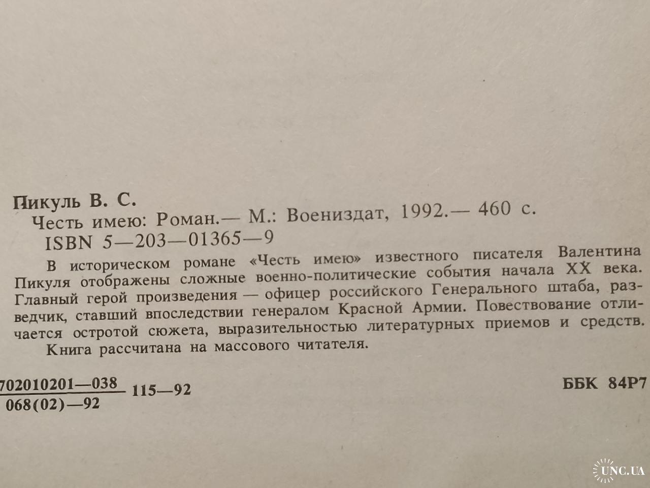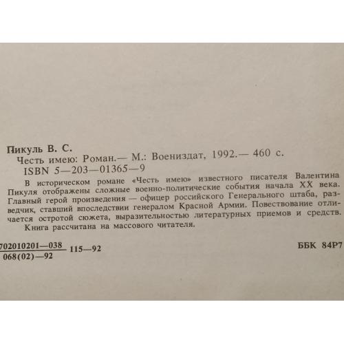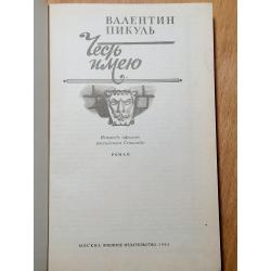 Пикуль. Честь имею. Воениздат. 1992 год Ув. формат