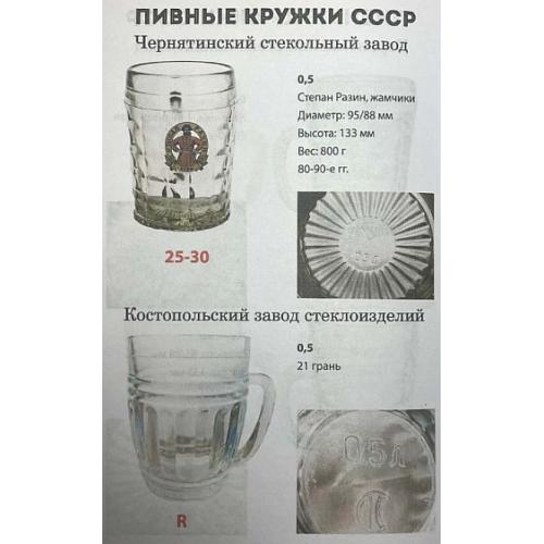 В данном каталоге собраны основныеизвестные разновидности пивных кружек, выпущенных за период существования СССР, а также в годы молодой России.