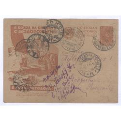 Рекламно-Агитационная почтовая карточка отправлена как повестка из Харькова в Одессу 23 января 1936 года Михаилу Александровичу Ярославскому. На лицевой стороне подпись получателя: "Получил 24 января 1936 г. в 10 утра".