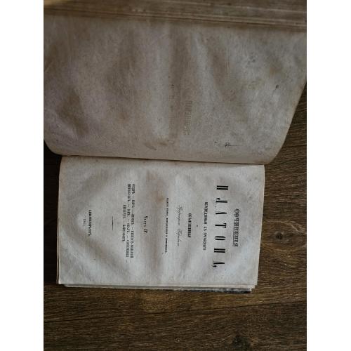 Платон. Сочинения Платона в 6 томах. Часть III-IV. переведенные с греческого и объясненные профессором Карповым. Издание 2-е, исправленное и дополненное. СПб тип. Странник 1863г. Твердый полукожанный переплет, Чуть увеличенный формат