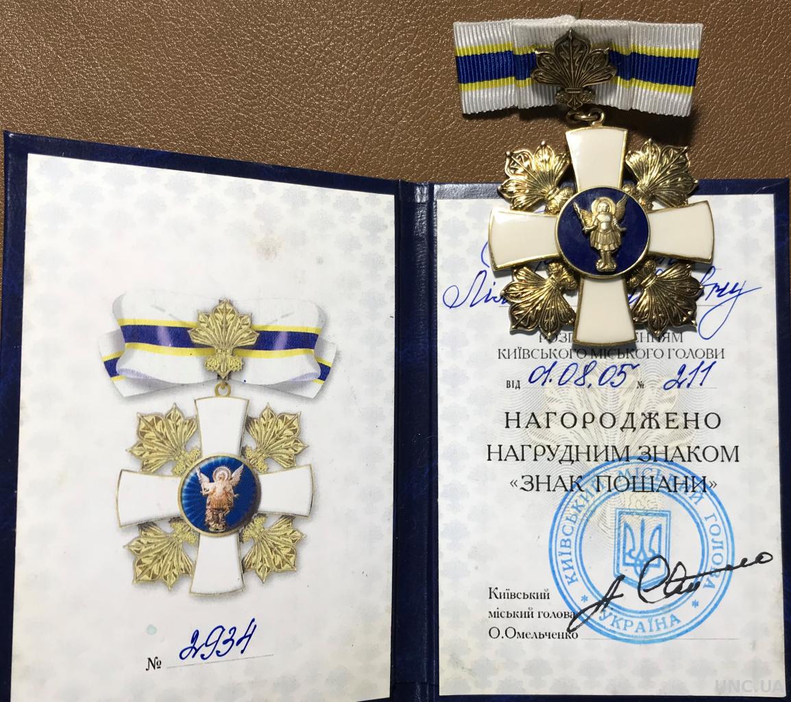 Почесна відзнака Знак пошани Київського міського голови срібло 925 клеймо Київ + документ