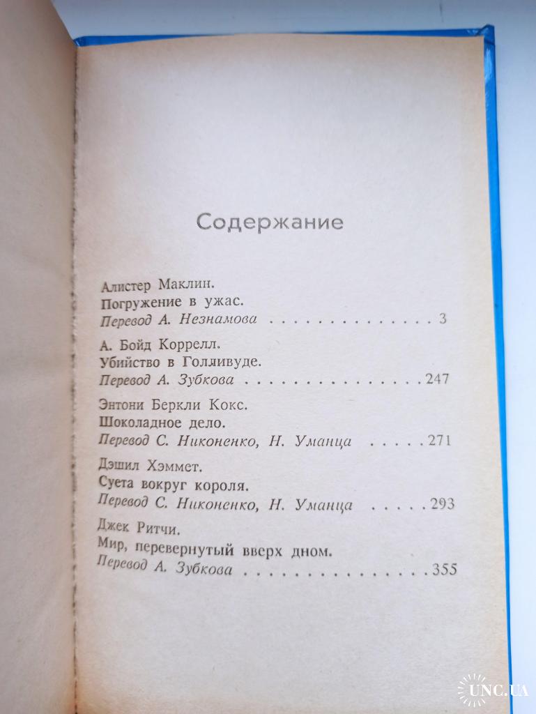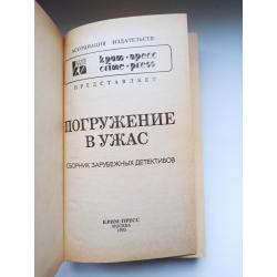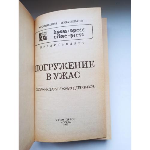 В романе английского писателя Алистера Маклина «Погружение в ужас» рассказывается о борьбе сотрудника ФБР Талбота с международной преступной организацией, занимающейся похищением драгоценностей с затонувших судов и самолетов. Алистер Маклин отличается среди авторов детективной литературы тонким юмором и изысканностью языка, для его книг характерны богатый сюжет и занимательная интрига. Кроме того, в сборник включены остросюжетные рассказы детективного жанра.