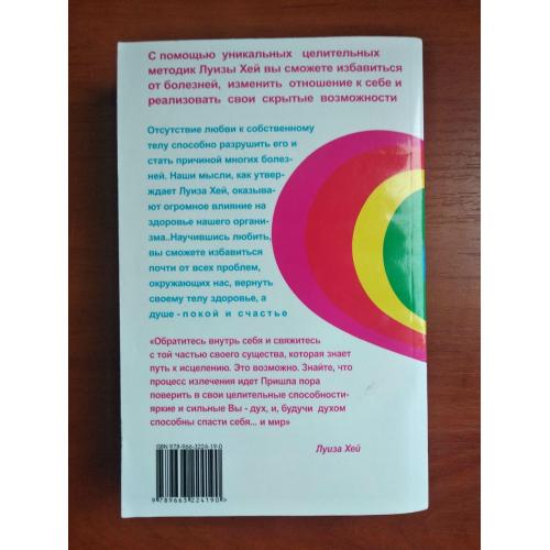 Обобщающее издание, в котором собраны основные взгляды Луизы Хей на взаимосвязь психологического состояния человека и физического здоровья. Книга систематизирует авторские методики самопомощи, аффирмации и интерпретации психосоматических причин заболеваний, изложенные в рамках популярной концепции позитивного мышления и личностной ответственности за состояние организма.
