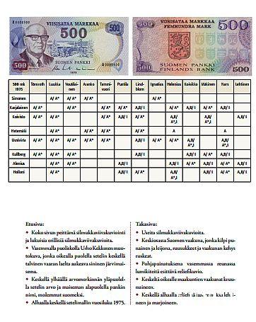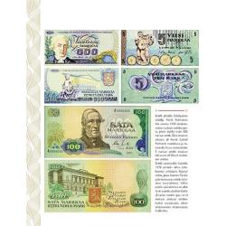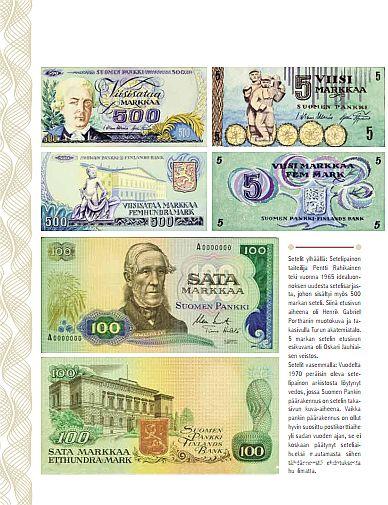 Жизненный цикл банкнот финляндской марки в период с 1945 по 2002 год рассматривается как с внутренней, так и с международной точки зрения. Книга содержит большое количество интересной информации о банкнотах и их дизайне. Иллюстрации включают, среди прочего, ранее неопубликованные эскизы от известных художников. В книге содержится прочая информация, представляющая бонистический интерес, включая сведения о развитии технологии печати и эволюции мер по защите от подделки.