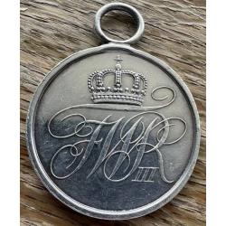 1901-1920Награда первоначально была учреждена 18 января 1810 года, прусским королем Фридрихом Вильгельмом III (1797-1840 гг.), с того момента претерпела изменения, на период 1 Мировой войны (1914-1918 гг.) состояла из 1 класса выполненного в виде креста, серебряной медали 2 класса, и бронзовой медали (учреждена 27 января 1912 года, выпускалась с монограммой учредителя награды короля Пруссии и кайзера Германии Вильгельма II). Награда могла иметь ленты различного исполнения, в зависимости от ее назначения (серебряная медаль с обозначением Немецкого Красного Креста).