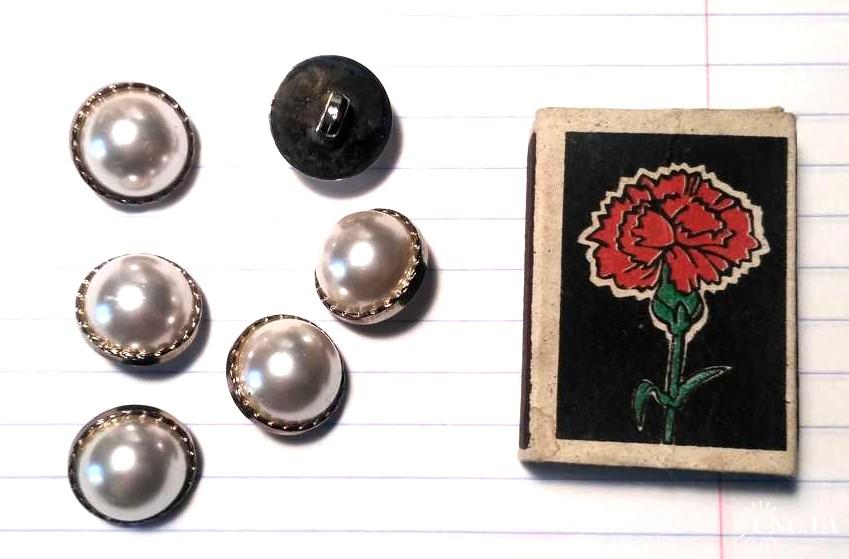 2001-2020Пуговицы нарядные "Жемчуг в золоте" 6 штук Д = 18 мм, на ножке
