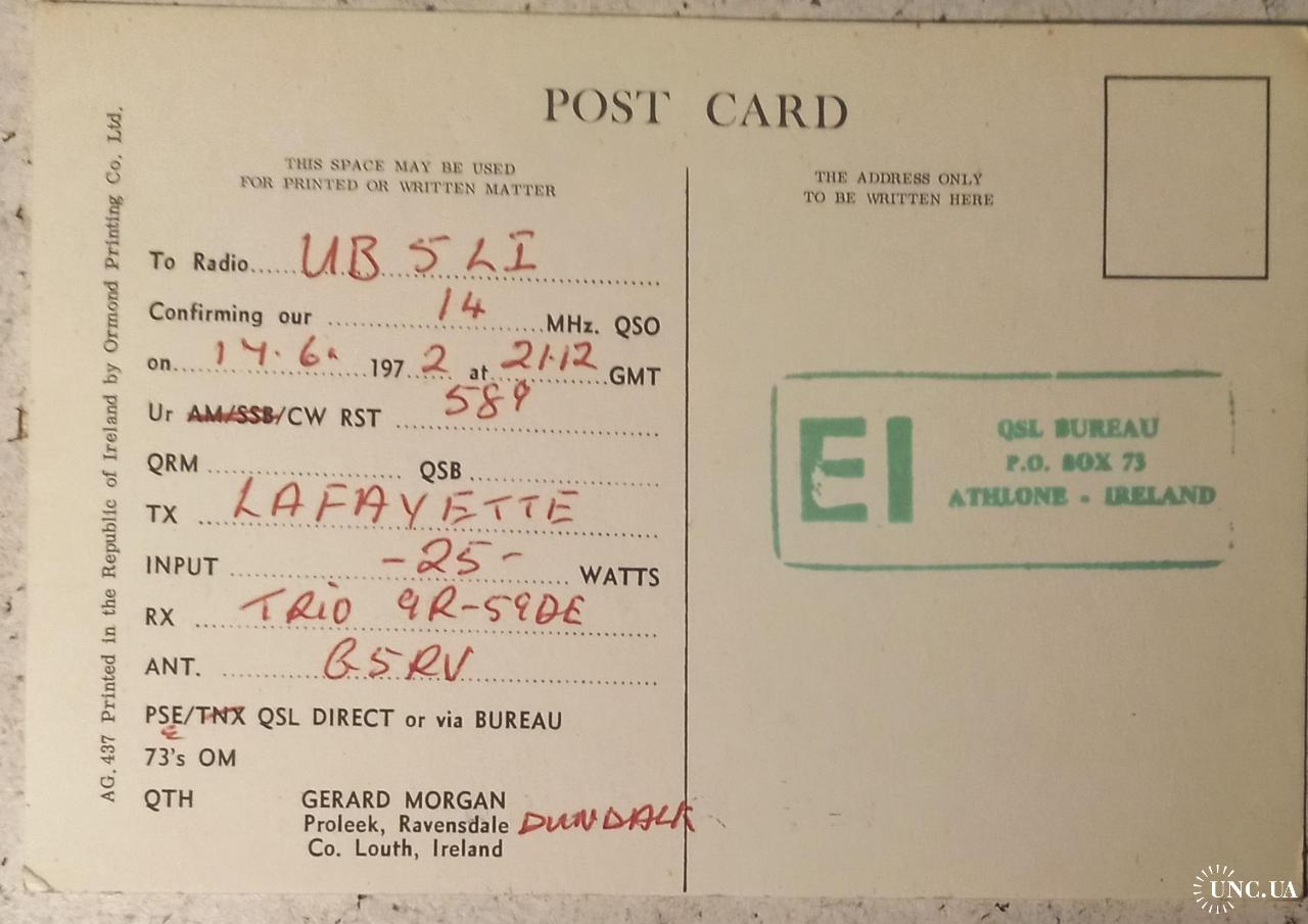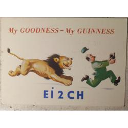 Рекламная почтовая карточка, совмещенная с QSL-карточкой. На лицевой стороне комичный образ ирландца, который спасается бегством от льва и держит перед собой кружку и бутылку с любимейшим напитком. Надпись: «Боже мой, мой Гиннесс! В Ирландии «Гиннесс»— это не просто бренд темного пивного бренда, а национальный символ, культурная икона и самый популярный алкогольный напиток, символизирующий страну во всем мире.. Этот бренд, основанный Артуром Гиннессом в 1759 году, олицетворяет ирландские традиции, пабную культуру и гордость. Ниже размещен позывной-сигнал ирландца Джерарда. На обратной стороны – данные радиообмена в эфире и локация. Это Дандолк — город в Ирландии, административный центр графства Лаут. Находится на побережье Ирландского моря примерно в 80 километрах к северу от Дублина. Дандолк — исторический город в Ирландии (графство Лаут), богатый древними руинами, кельтскими памятниками и легендами. Карточка без дефектов. Состояние отличное.