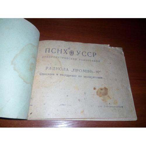 1961-1980Радиола "ПРОМІНЬ-М" (Описание и инструкция по эксплуатации).