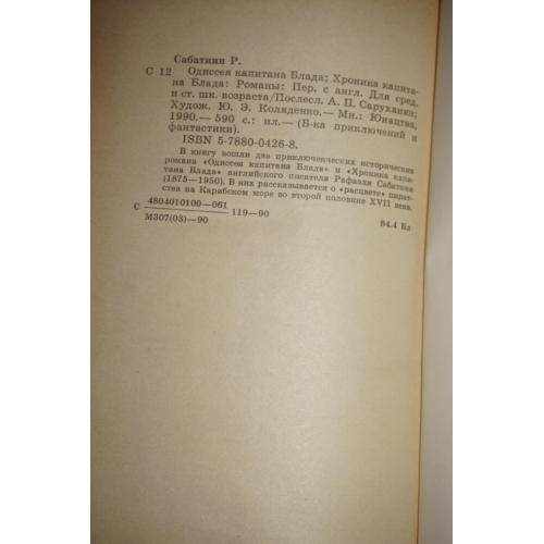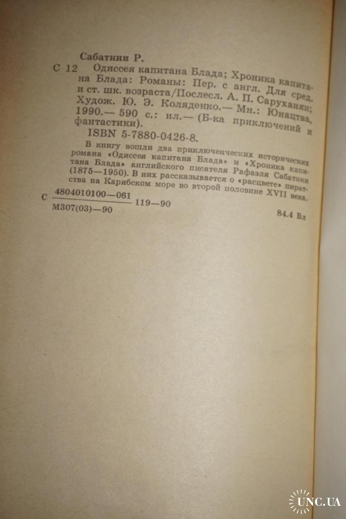 В книгу вошли два приключенческих исторических романа `Одиссея капитана Блада` и `Хроника капитана Блада` английского писателя Рафаэля Сабатини (1875-1950). Автор рассказывает о `расцвете` пиратства на Карибском море во второй половине XVII века. Вес книги 500 гр.