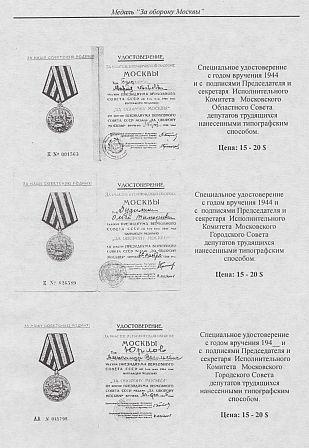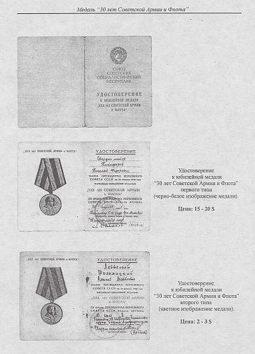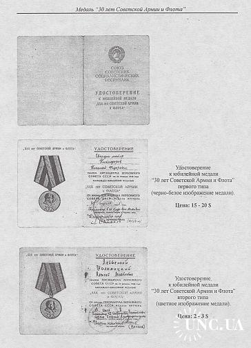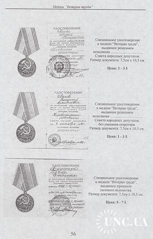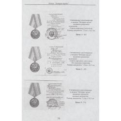 Даны типы и варианты общих и специальных орденских книжек и удостоверений к медалям, а также цены на них.