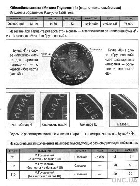 Каталог разновидностей юбилейных монет Украины, монетовидных изделий и жетонов, включая некоторые особенности обиходных и разменных монет Украины и банкнот Национального банка Украины с 1991 по 2006 год.