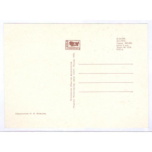 Реклама: Космическая филателия - увлекательное и познавательное занятие. Всесоюзное Общество Филателистов. Издание Министерства связи СССР Москва 1974 год.