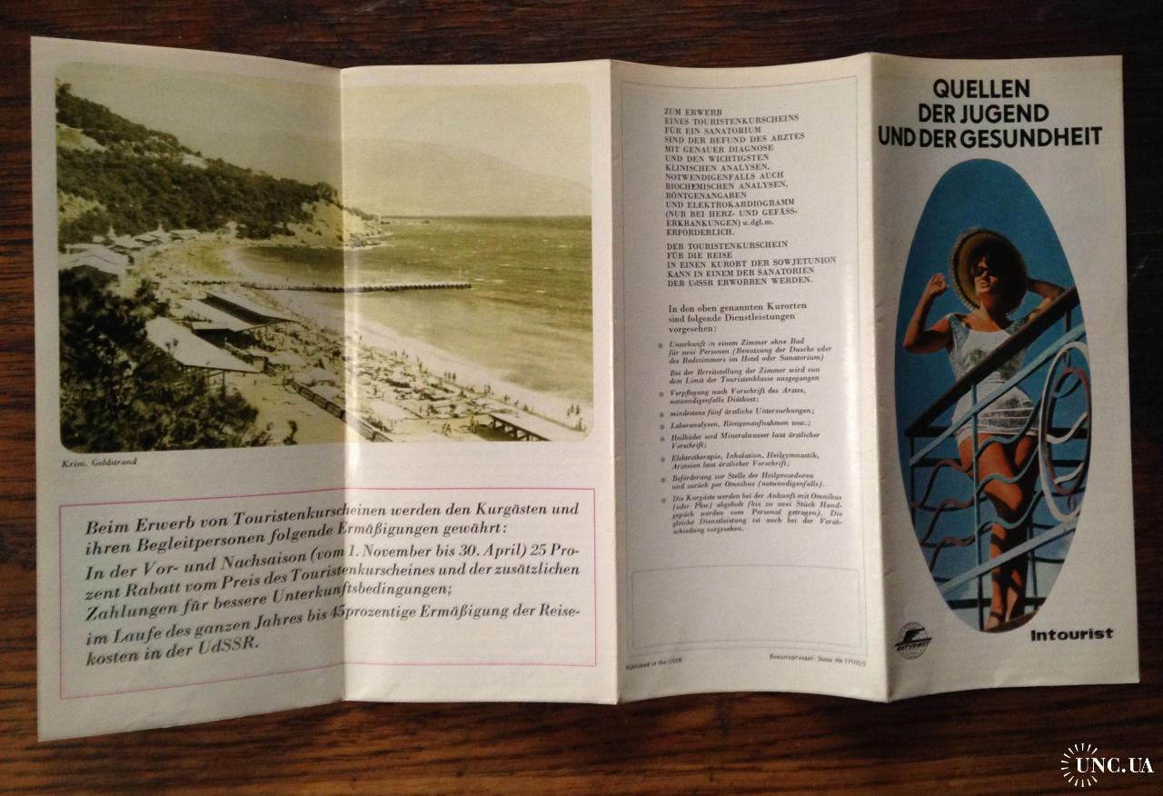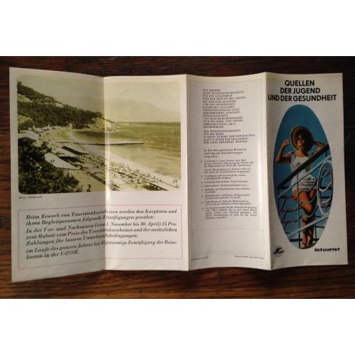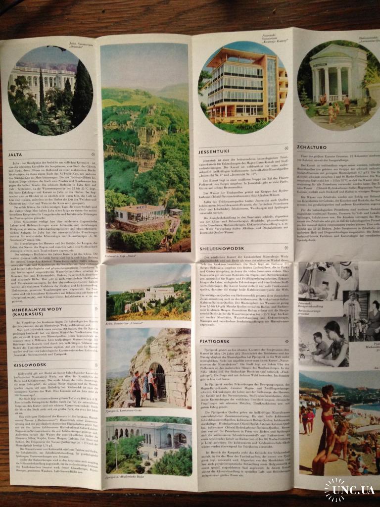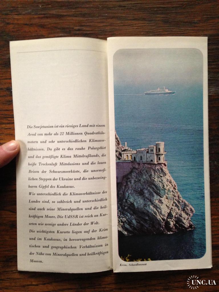 Реклама СРСР. Туристичні міста СРСР. Ялта,Мінеральні Води, Кисловодськ, Єсентуки, Желєзноводськ, П'ятигорськ, Цхалтубо, Сочі. Німецькою мовою.