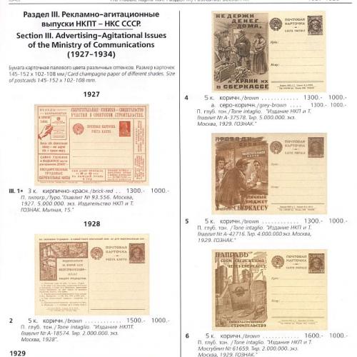 В каталоге представлены рекламно-агитационные почтовые карточки и конверты, выпущенные в СССР в период 1924-1949 гг. НКПТ-НКС, агентством "Связь" и его отделениями, Средне-Азиатским справочным бюро при Управлении связи и др., а также иллюстрированные односторонние почтовые карточки периода 1941-1980 гг.