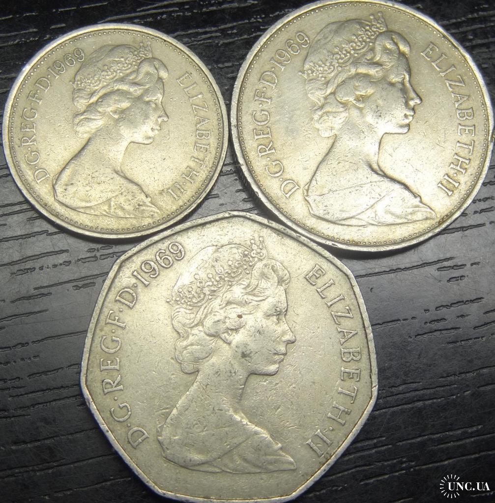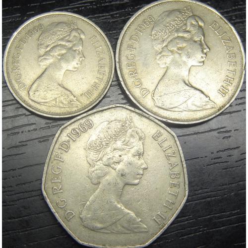 Complete set of Great Britain 1969 / Повний річний комплект обігових монет Британії 1969