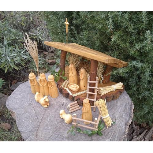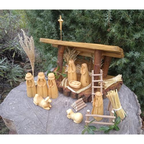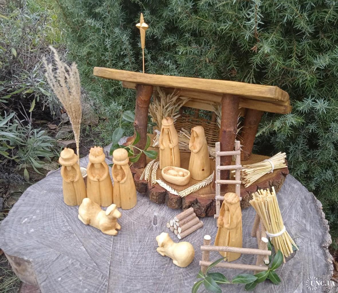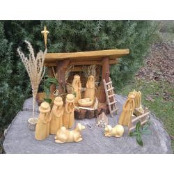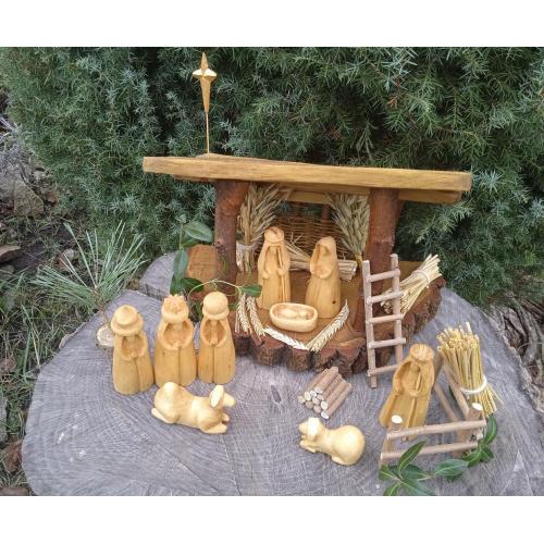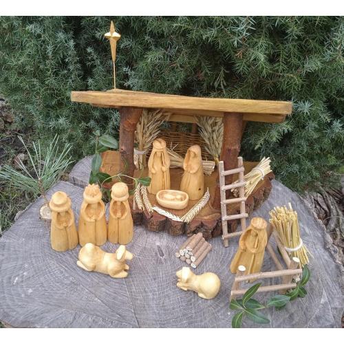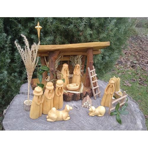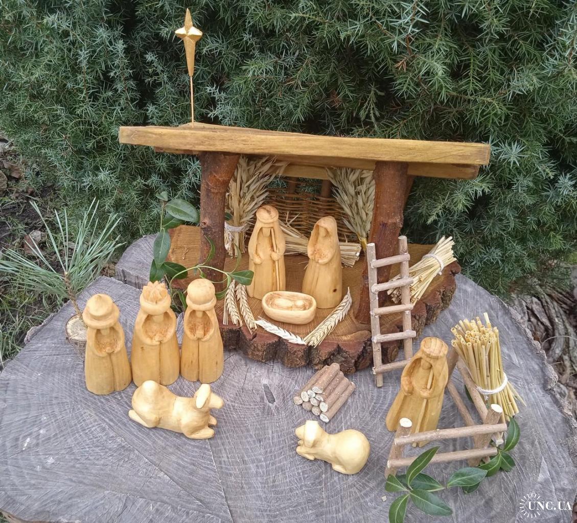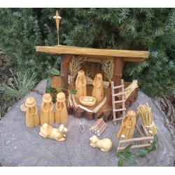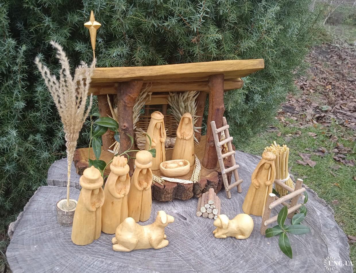 Різдвяна шопка з різьбленими вручну фігурками Божої Матері, Йосипа,