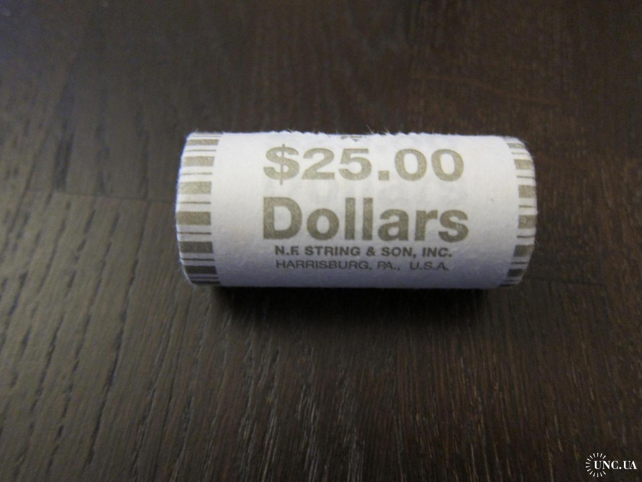 Ролл $1 монет США (1 доллар) 25 шт. різні. Як на фото. Упаковани в банку США, випадковим чином, бувши в обігу.