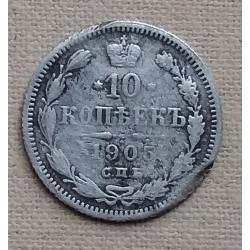 ОригіналРоссия 10 копеек, 1905 г СПБ АР, серебро