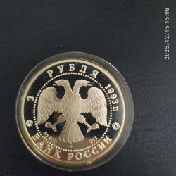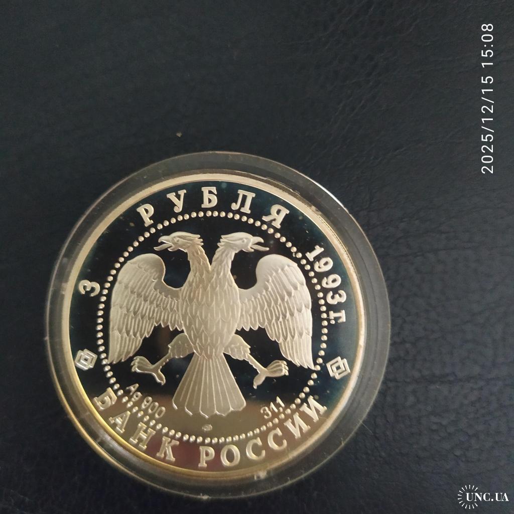 Оригіналколлекционная монета,1993г., 3 руб., олимпийский век России, футболисты 5 олимпиады, серебро "пруф", проба 900, тираж 40000шт. Монета в капсуле. Монете более 30 лет, в некоторых местах она покрыта "патиной". Стоимостью 2500.00грн., по каталогу Krause - 60,0$.
