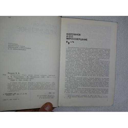 В сборник работ русского философа и писателя В.В.Розанова (1856-1919) включены произведения, сделавшие его имя широко известным в предреволюционные годы: философско-этическая трилогия - `Уединенное` и два короба (тома) `Опавших листьев`, а также `Апокалипсис нашего времени` (1917-1918) - одна из своеобразных книг того сурового времени. В данное издание входят статьи Розанова `Семья как религия`, `Библейская поэзия` и др. Книга рассчитана на всех, кто интересуется историей русской философской и этической мысли.
