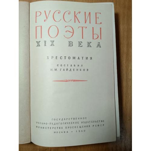 Русские поэты XIX века. Хрестоматия. Сост. Гайденков. 1960. Ув формат. Тир 10000 экз. Очень хорошее состояние. На чистом форзаце небольшая надпись.