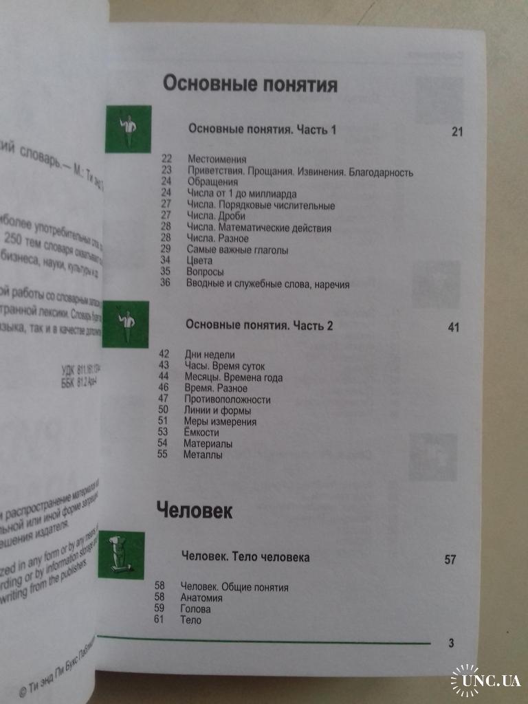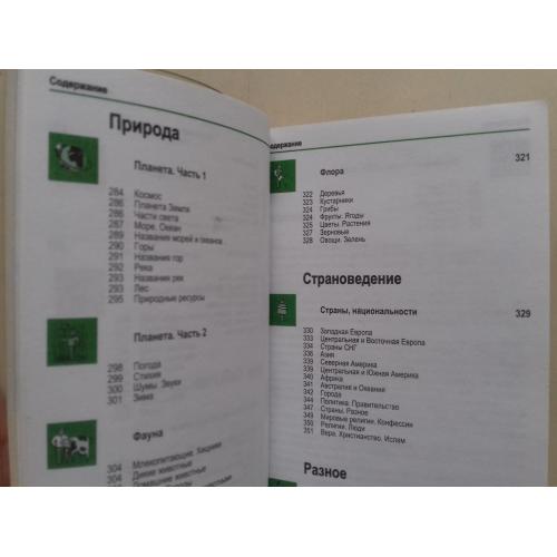 Около 9 тыс слов. Словарь организован по тематическому принципу. 250 тем охватывают основные сферы повседневной деятельности.