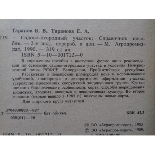 В.В. Таранов, Е.А. Таранова. Издательство "Агропромиздат", М. 1990 г.
