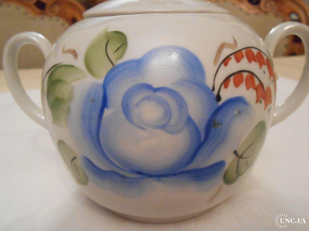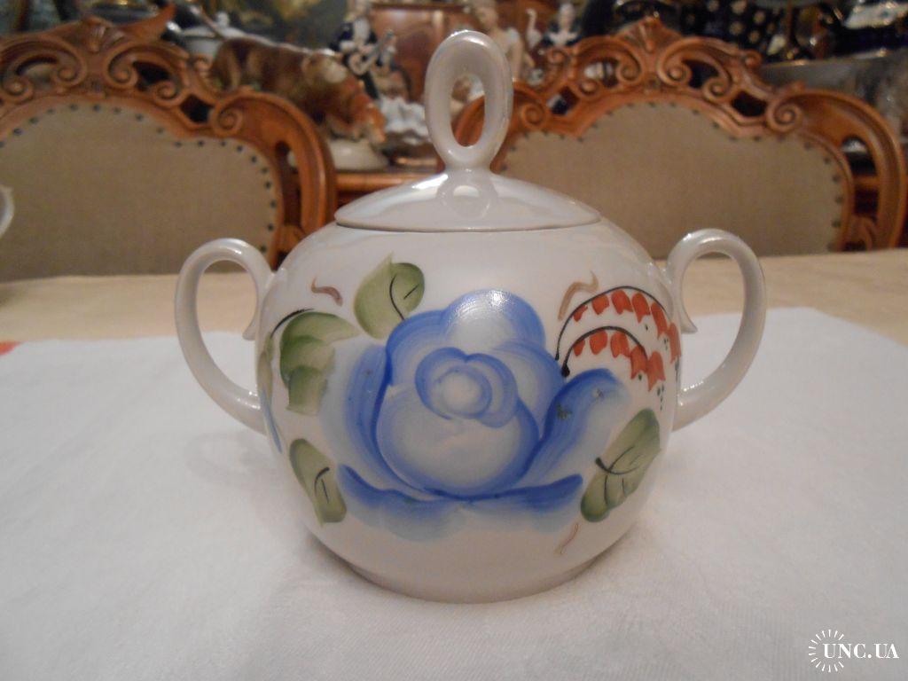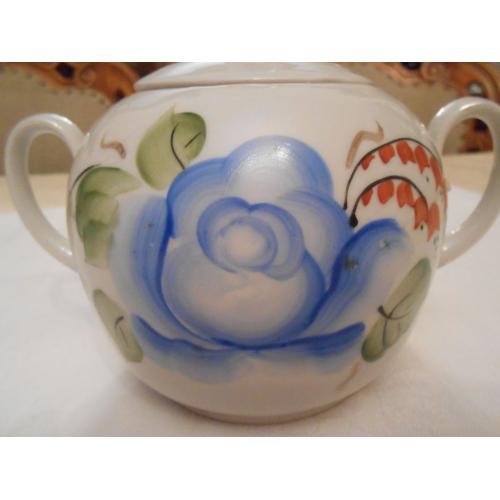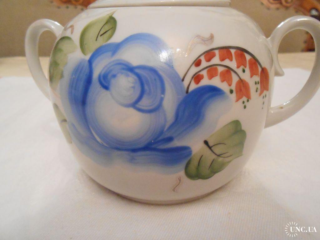 1961-1980Сахарница Ручная роспись Фарфор СССР ПФЗ ( Полтавский фарфоровый завод ) Без сколов и трещин Высота 13 см.