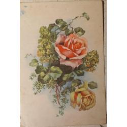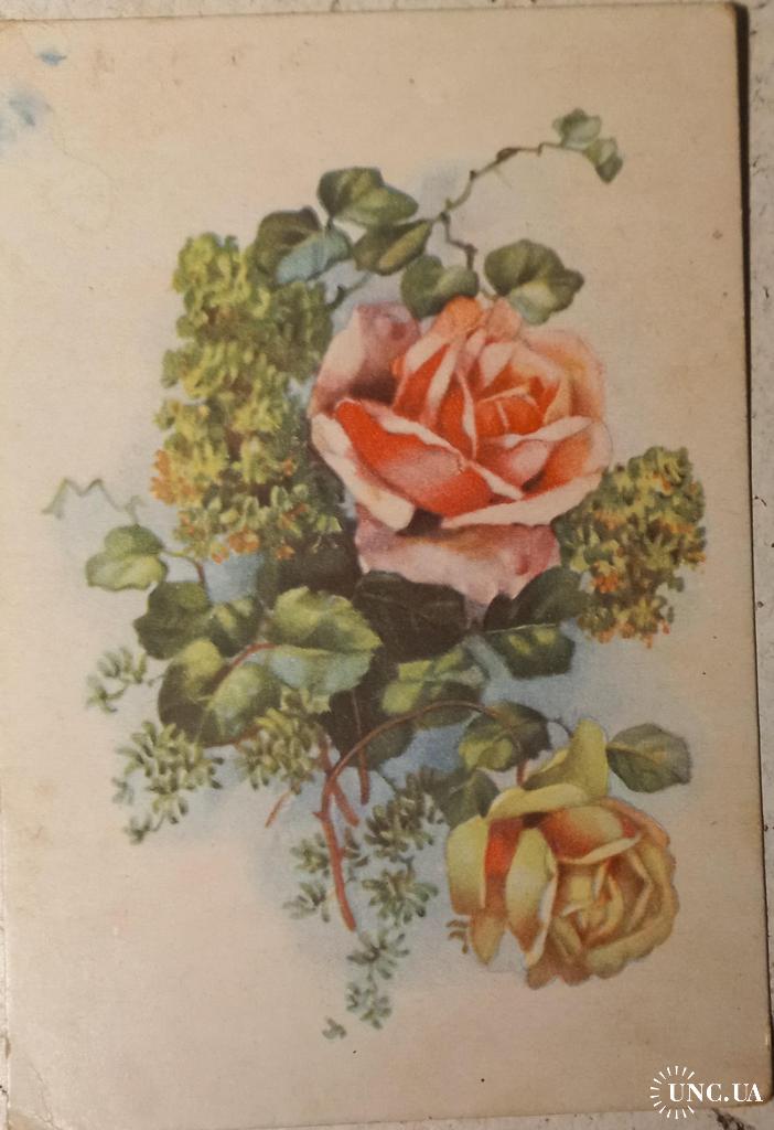 Худож. открытка. Розы. Австрия 1940-е годы. Поздравление из послевоенной Австрии от однополчанки по Красной Армии моей маме, участнице ВОВ. Рукописный текст.1948 г. Следы времени. Состояние хорошее.
