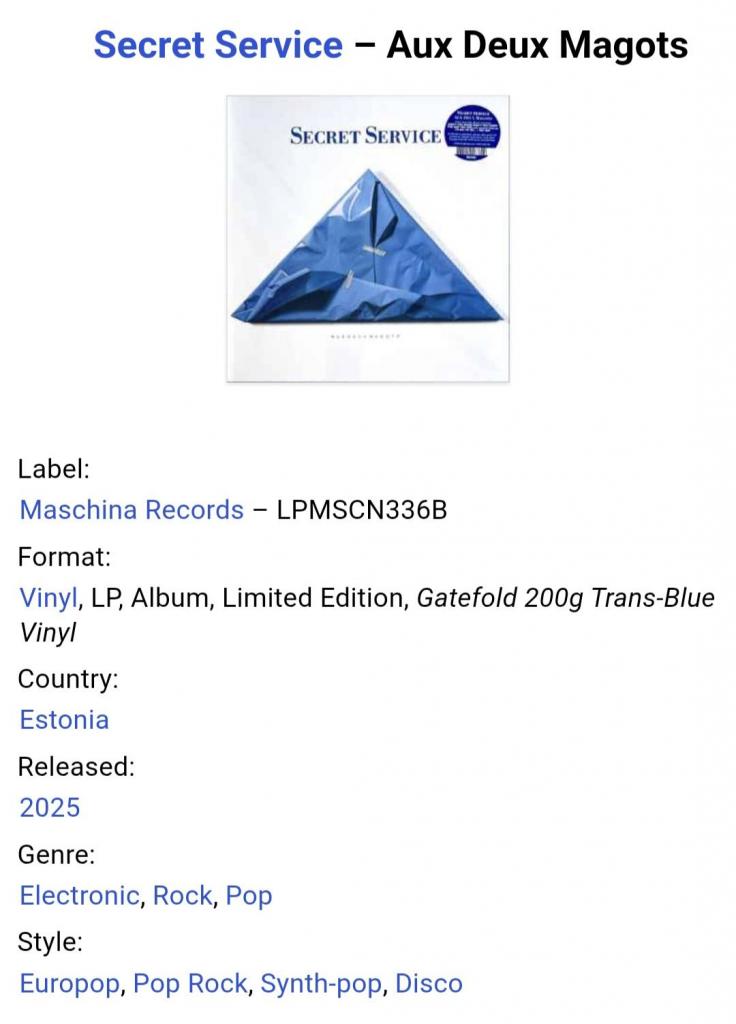 Вінілова платівка. Шостий, в дискографії, студійний альбом Шведської сінтіпоп, поп нью вейв групи Secret Service, яка складалась з учасників Тіма Норелла, Ульфа Валберга, Джона Бекера, Матса Ліндберга, Джемі Боргера та Андерса Ханнсона (Aux Deux Magots) 1987. Випуск фірми (Maschina Records) Europe, 2025-ий рік. Кольоровий вініл (Coloured Vinyl). Лімітований тираж (Limited Edition). Видання нове, запаковане. Категорія S/S. Відправка по Україні службами доставки: Нова Пошта, Укр Пошта, Делівері. Також відправляємо посилки за кордон по цілому світу.