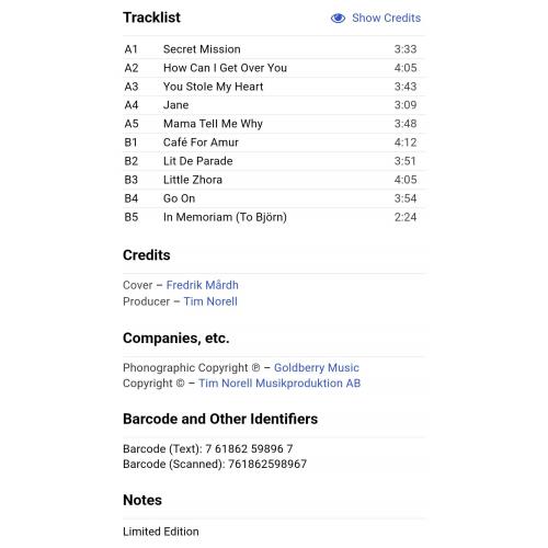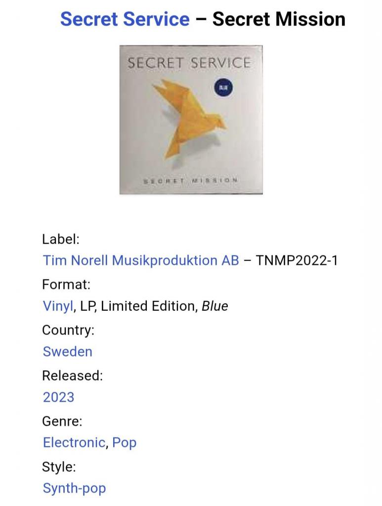 Вінілова платівка. Восьмий, в дискографії, студійний альбом Шведської сінтіпоп, поп нью вейв групи Secret Service, яка складалась з учасників Тіма Норелла, Ульфа Валберга, Джона Бекера, Матса Ліндберга, Джемі Боргера та Андерса Ханнсона (Secret Mission) 2022. Випуск фірми (Tim Norell Musikproduktion AB) Europe, 2023-ій рік. Кольоровий вініл (Coloured Vinyl). Лімітований тираж (Limited Edition). Видання нове, запаковане. Категорія S/S. Відправка по Україні службами доставки: Нова Пошта, Укр Пошта, Делівері. Також відправляємо посилки за кордон по цілому світу.