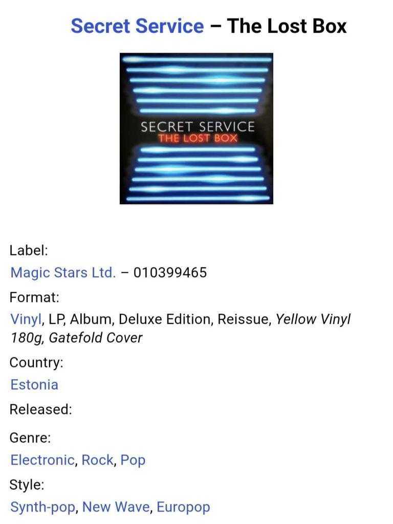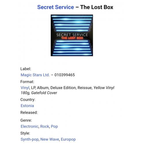 Вінілова платівка. Сьомий, в дискографії, студійний альбом Шведської сінтіпоп, прп нью вейв групи Secret Service, яка складалась з учасників Тіма Норелла, Ульфа Валберга, Джона Бекера, Матса Ліндберга, Джемі Боргера та Андерса Ханнсона (The Last Box) 2012. Випуск фірми (Magic Stars Ltd) Europe, 2019-ий рік. Кольоровий вініл (Coloured Vinyl). Лімітований тираж (Limited Edition). Видання нове, запаковане. Категорія S/S. Відправка по Україні службами доставки: Нова Пошта, Укр Пошта, Делівері. Також відправляємо посилки за кордон по цілому світу.