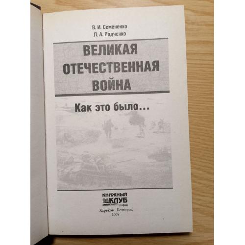 Семененко, Радченко. Великая Отечественная война. Как это было. Серия Фронт. Версии. Комментарии. Издательство: Харьков-Белгорол. КСД. 2009 год. Очень хорошее состояние.